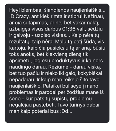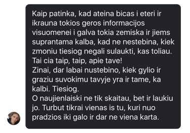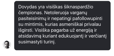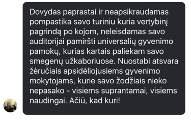 "Tavo naujienlaiškis yra naudingiausias turinys Lietuvoj."